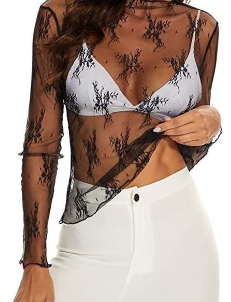 Long Sleeve Sheer Mesh Lace Top