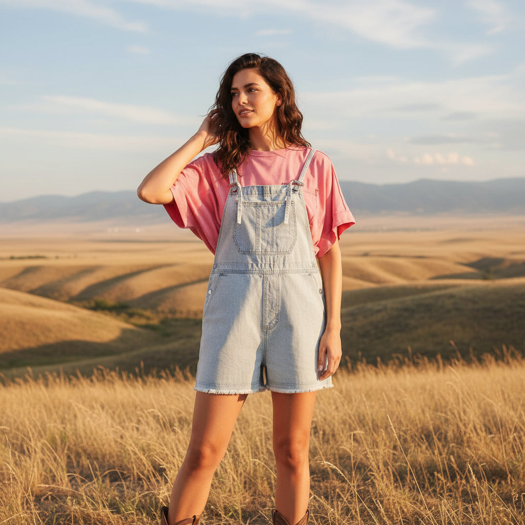 Easy Days Denim Short Overalls