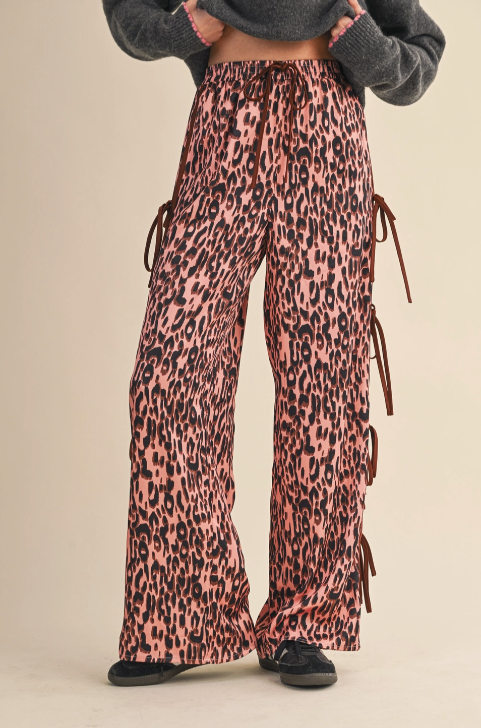 Brielle Raspberry Leopard Tie-Side Pants