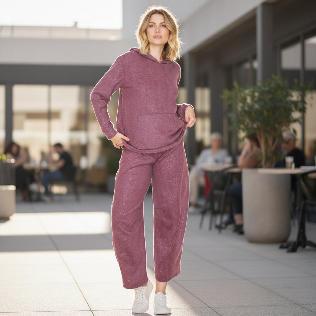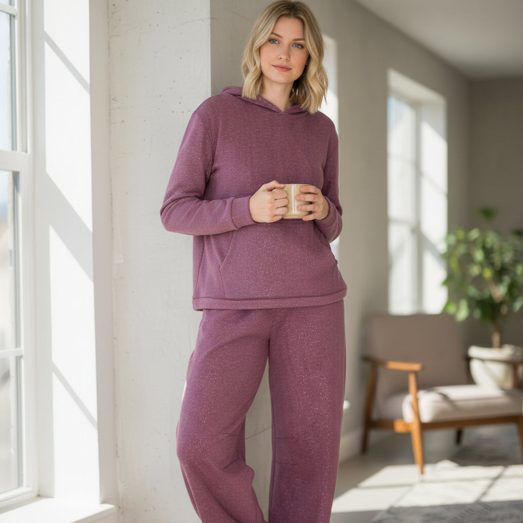 A subtle sparkle woven throughout the fabric adds an elevated touch, making this set just as perfect for casual outings as it is for lounging at home.