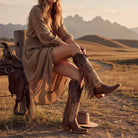 Designed with a leather lining and leather outsole, this boot is finished with Dan Post’s Ultimate Flex Insole for comfort and flexibility throughout the day. A 12-inch shaft circumference offers a sleek, flattering fit that pairs effortlessly with denim, skirts, or dresses. Confident, expressive, and rooted in craftsmanship, this boot is made to stand out season after season.