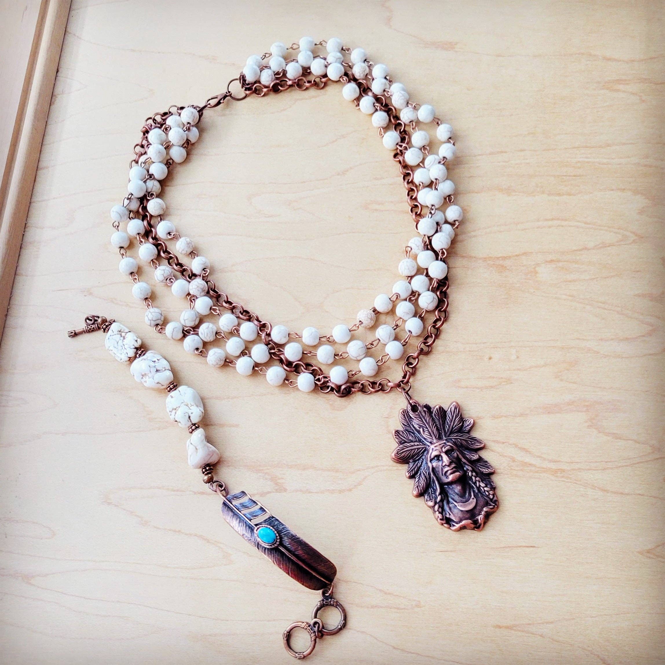 White Chunky Turquoise Beaded Bracelet on Copper Feather