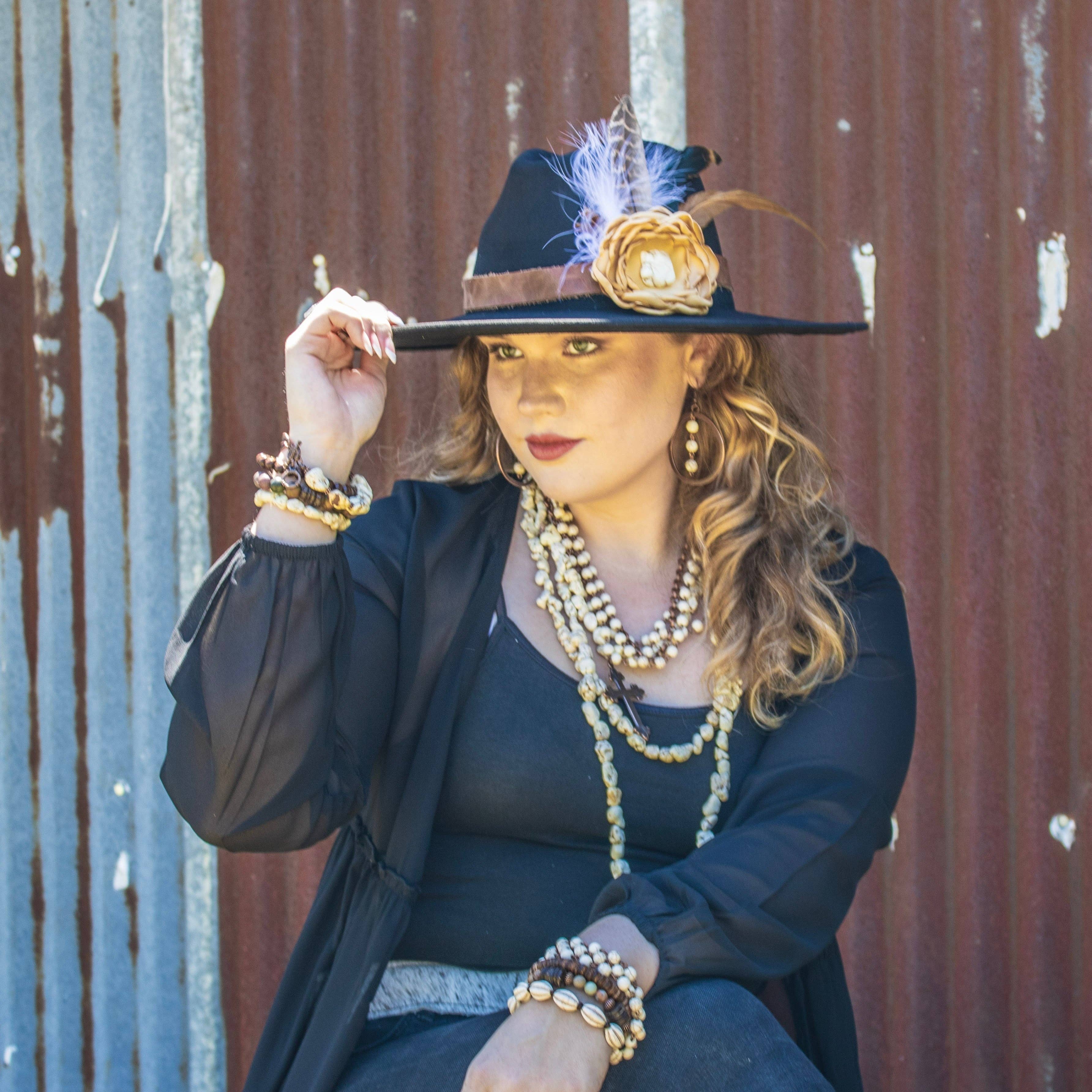 Expertly crafted with Boho Western flair, the Turquoise Feather Beaded Bracelet is a handmade jewelry piece that exudes natural beauty. The design adds dimension while the turquoise beads bring grounding and stability. Elevate your style with this unique and timeless bracelet. * Bracelet measures 7.5" in length plus extender * Genuine Chunky Turquoise stones up to 3 " in length with Antique Copper finish * Adjustable to two wrist sizes. * Although your item will resemble the photo, each piece is created by hand, so no two are identical.