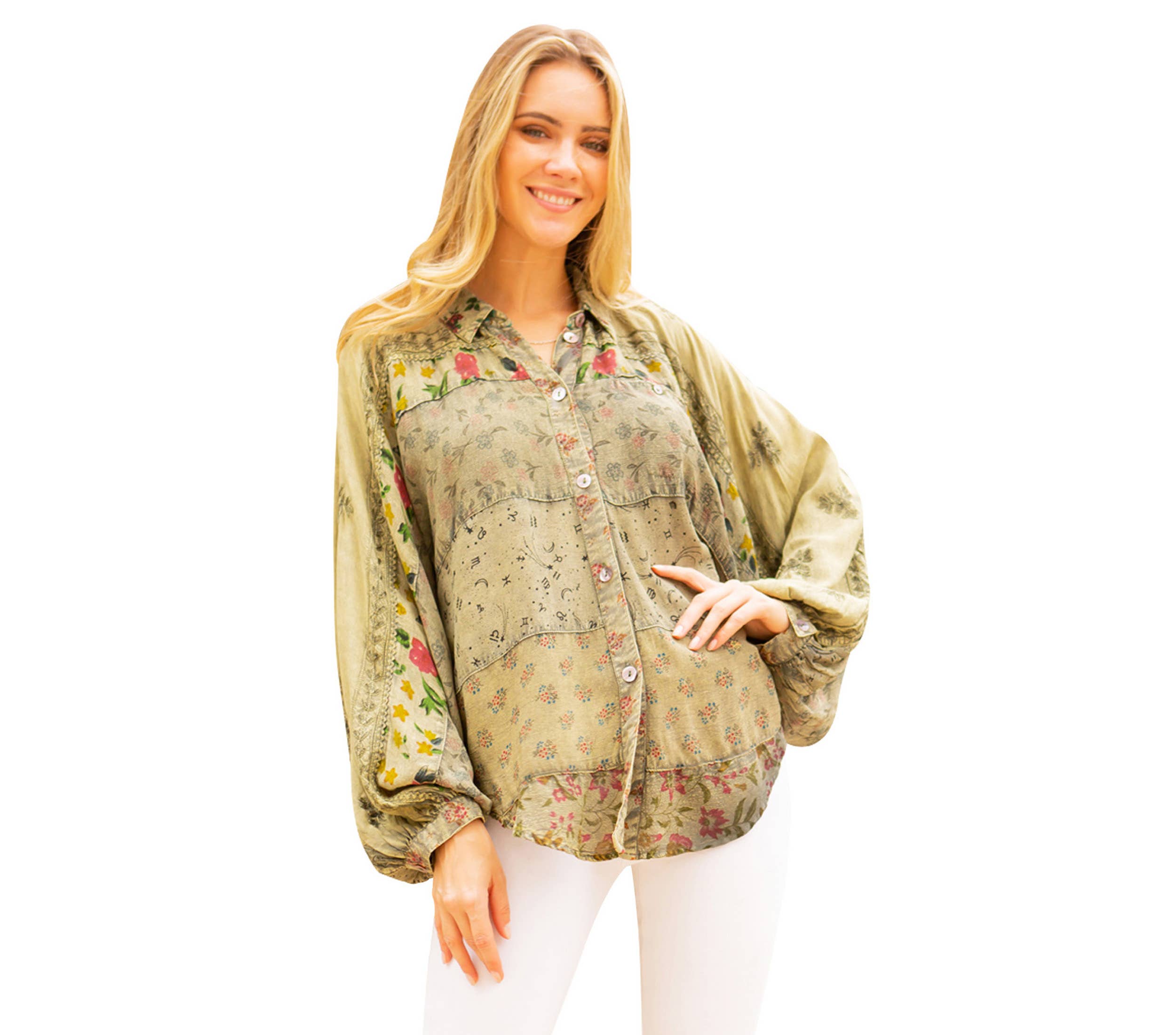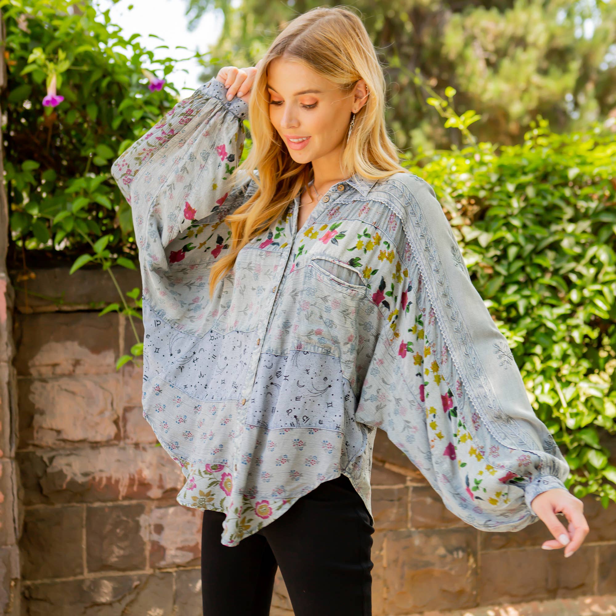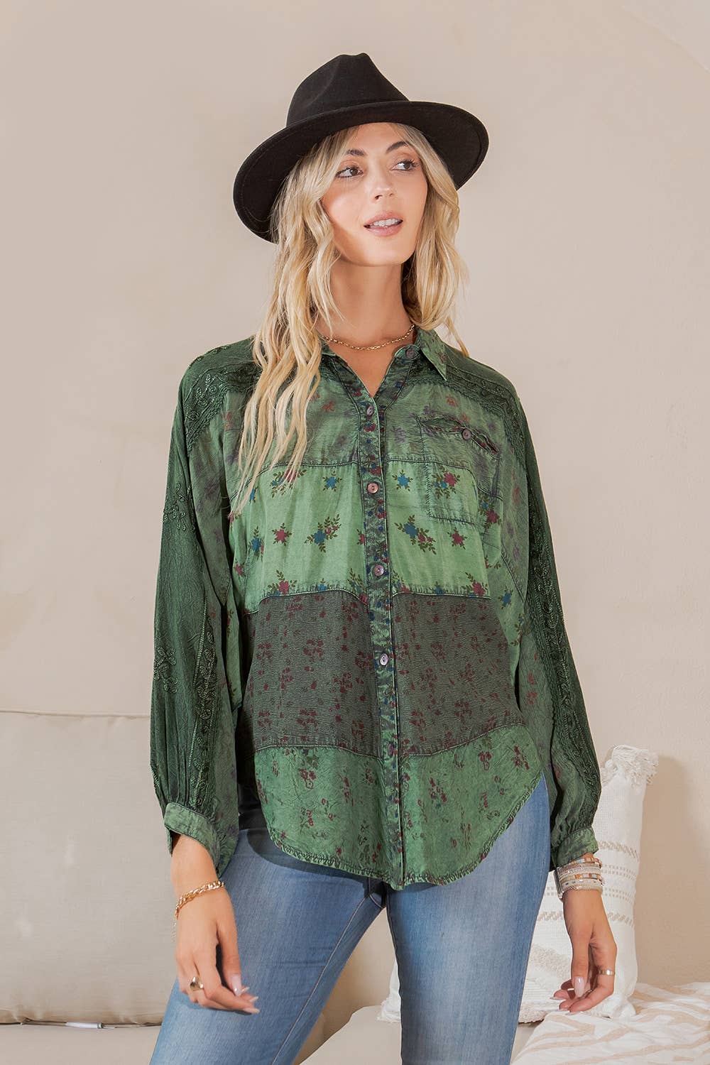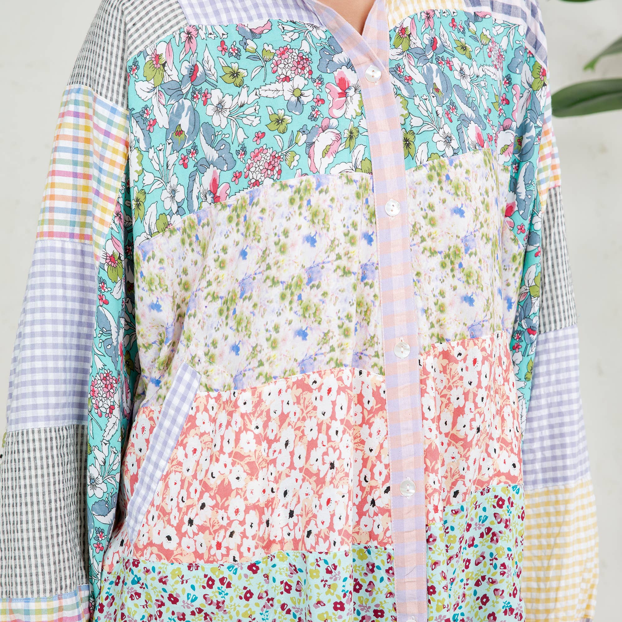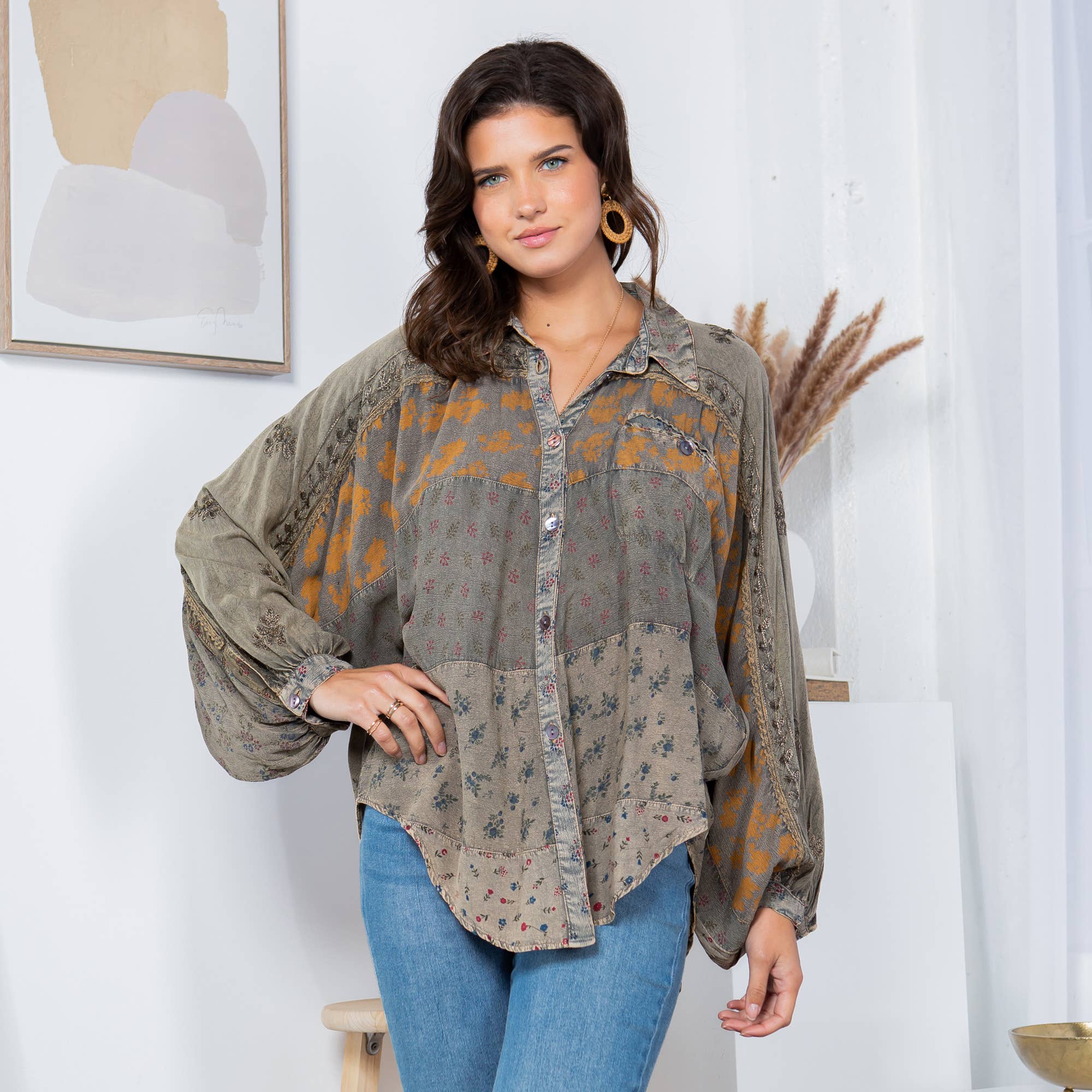 Printed Patchwork Mix Media Top