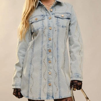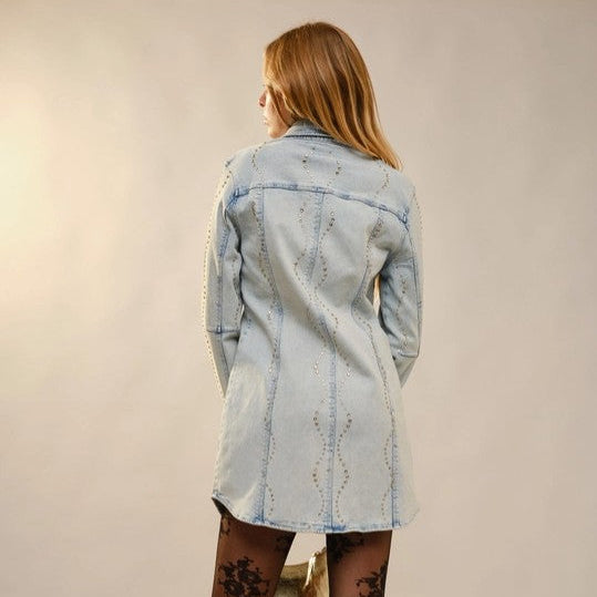 Rodeo Lights Rhinestone Wave Denim Shirt Dress