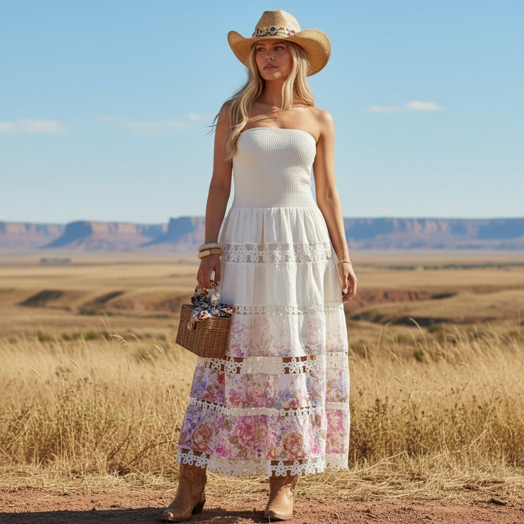 Contrast Embroidery Detail Sleeveless Midi Dress