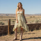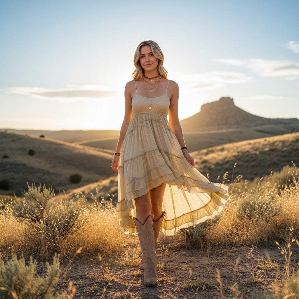 The airy fabric and movement in the skirt give it that effortless boho look that pairs perfectly with boots, sandals, or a denim jacket when the evening cools down.