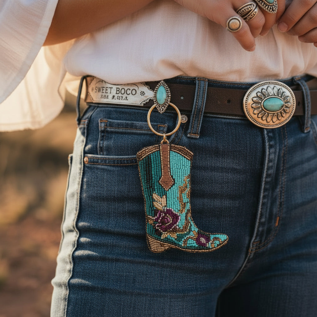 Kickin' Around Beaded Cowboy Boots Coin Purse/Key Fob