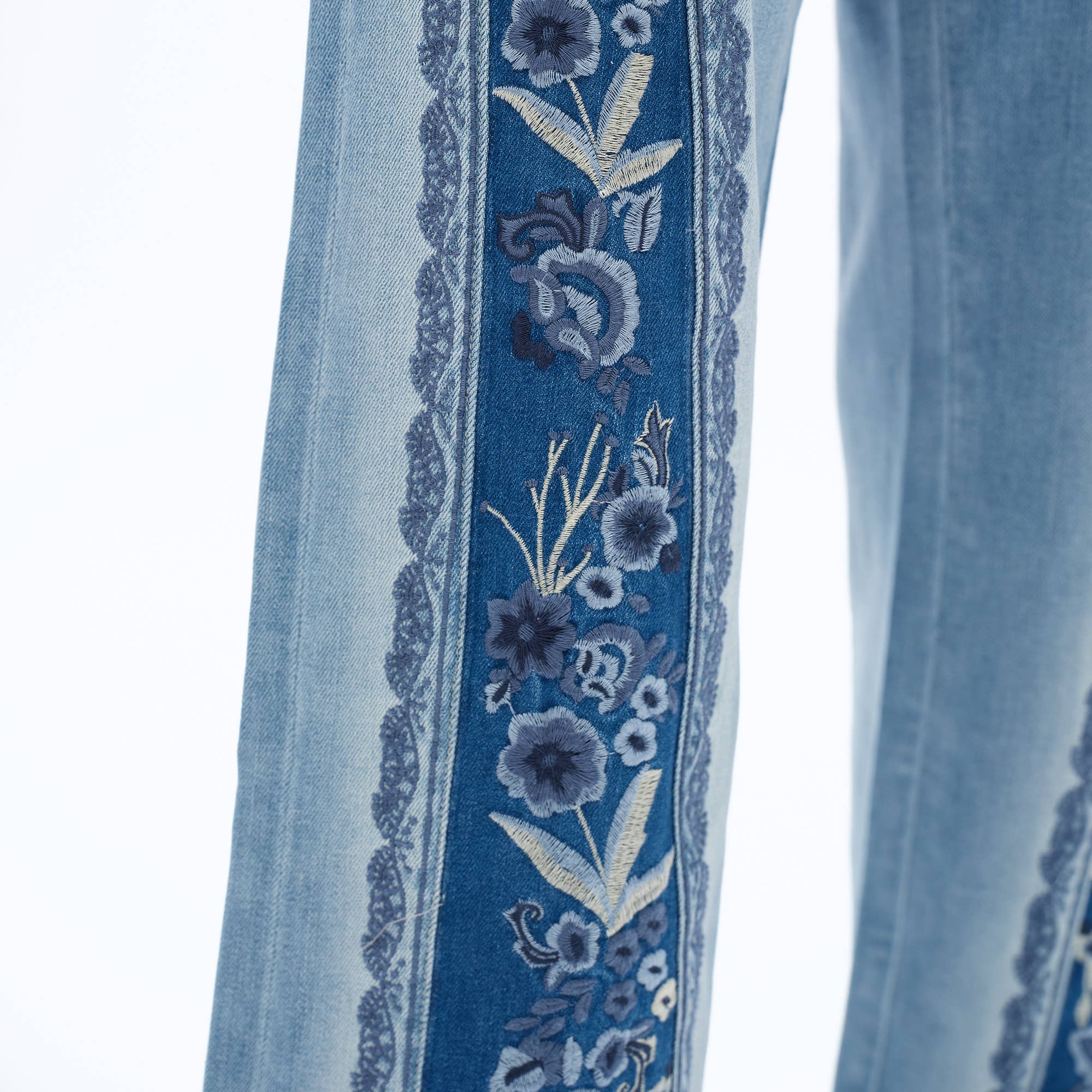 A statement pair with true vintage soul. These embroidered wide leg jeans blend soft, sun-washed denim with rich indigo panels and beautifully stitched floral detailing down each leg. The result is a pair that feels both artistic and effortless — the kind of jeans that instantly elevate even the simplest top.