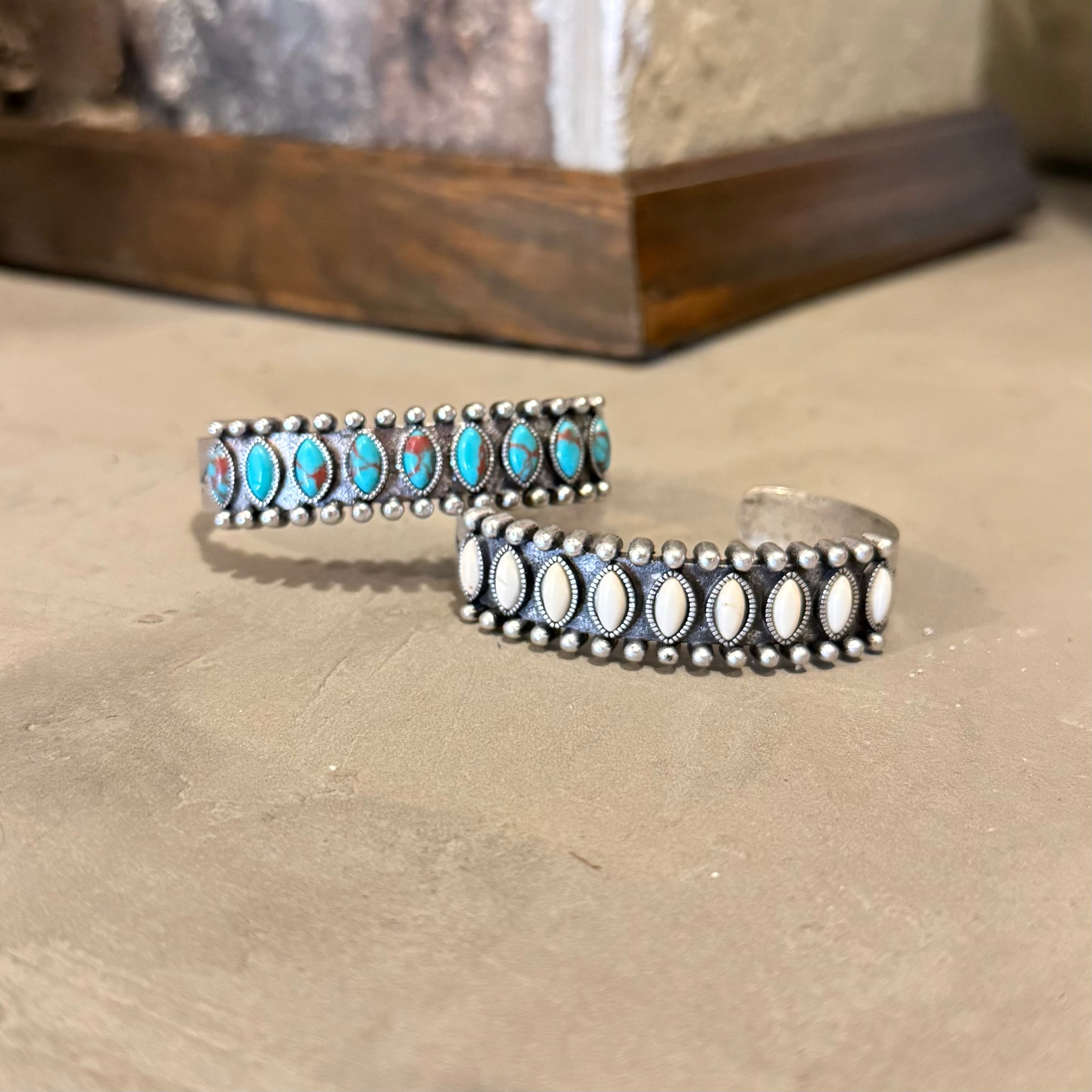 Wide Cuff Bangle Bracelet in Turquoise Navajo Leather