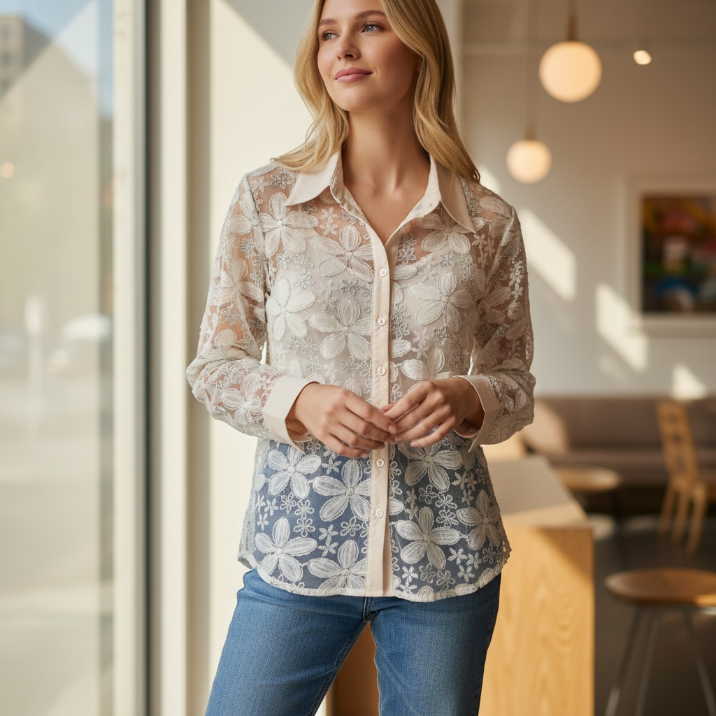 Daylight Lace Button-Down Blouse