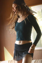 NikiBiki Lace Textured V Neck Top