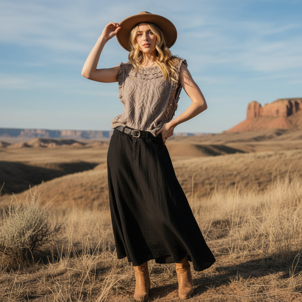 Crafted from a cozy yet flexible knit blend with a hint of stretch, this top offers comfort without feeling bulky. The sleeveless silhouette pairs beautifully with denim, trousers, or layered under jackets and cardigans. Refined, wearable, and versatile, this top transitions seamlessly from casual days to dressed-up evenings.