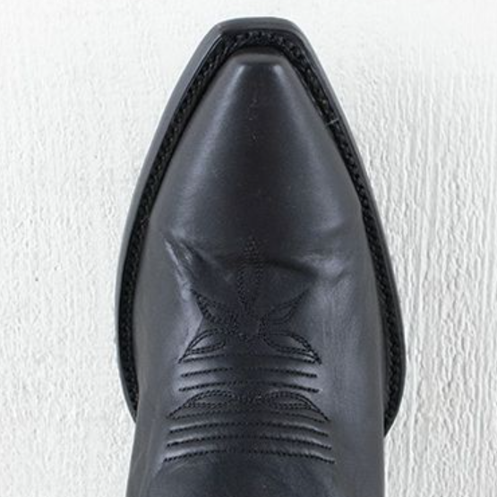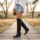 The Dan Post Jilted Black Over-the-Knee Boot is a bold, fashion-forward take on classic western craftsmanship. Designed with a 20-inch leather shaft and a sleek snip toe, this boot delivers striking height and a refined silhouette. Tonal stitching adds subtle western character, while the 2.5-inch fashion heel provides confident lift without sacrificing wearability.