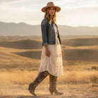 Built with a leather-lined interior and leather outsole, this boot is finished with Dan Post’s Ultimate Flex Insole for comfort and flexibility with every step. A 16-inch shaft circumference creates a flattering over-the-knee fit that pairs effortlessly with denim, skirts, or dresses. Strong, confident, and timeless, this boot is made for standout styling with long-lasting quality.
