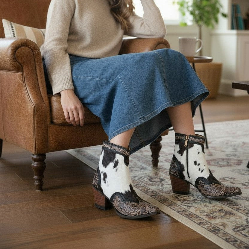 Glennchester Hair-on Hide & Hand-tooled Boots