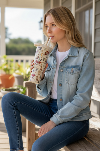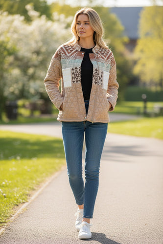 Light French Beige Aztec Quilted Patchwork Western Jacket