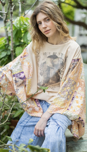 Macie Silver V-Neck w/Ruffle Collar Embroidery Top