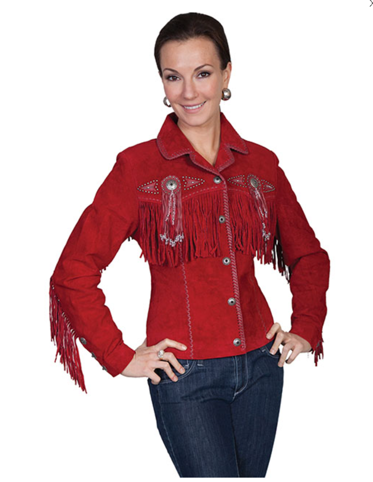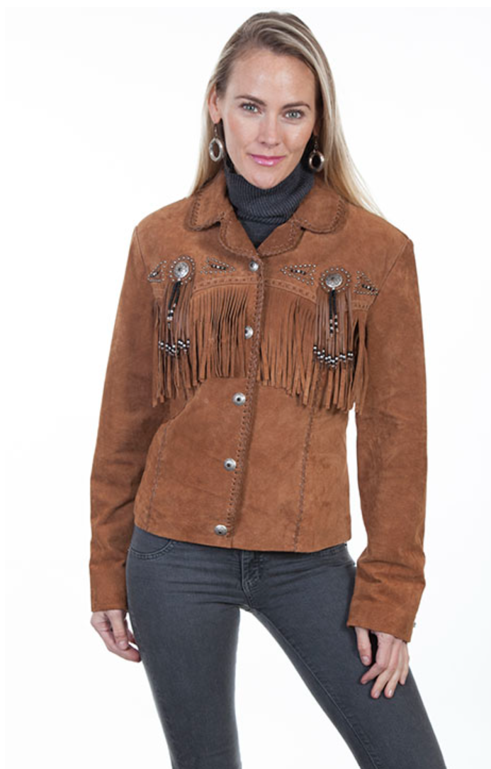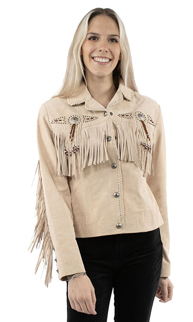 A timeless Western statement piece, this suede fringe jacket by Scully brings standout style from every angle. Crafted with rich suede and detailed with traditional conchos, beading, and full fringe across the front, back, and sleeves, it’s a true showstopper for rodeos, concerts, nights out, or everyday Western flair.