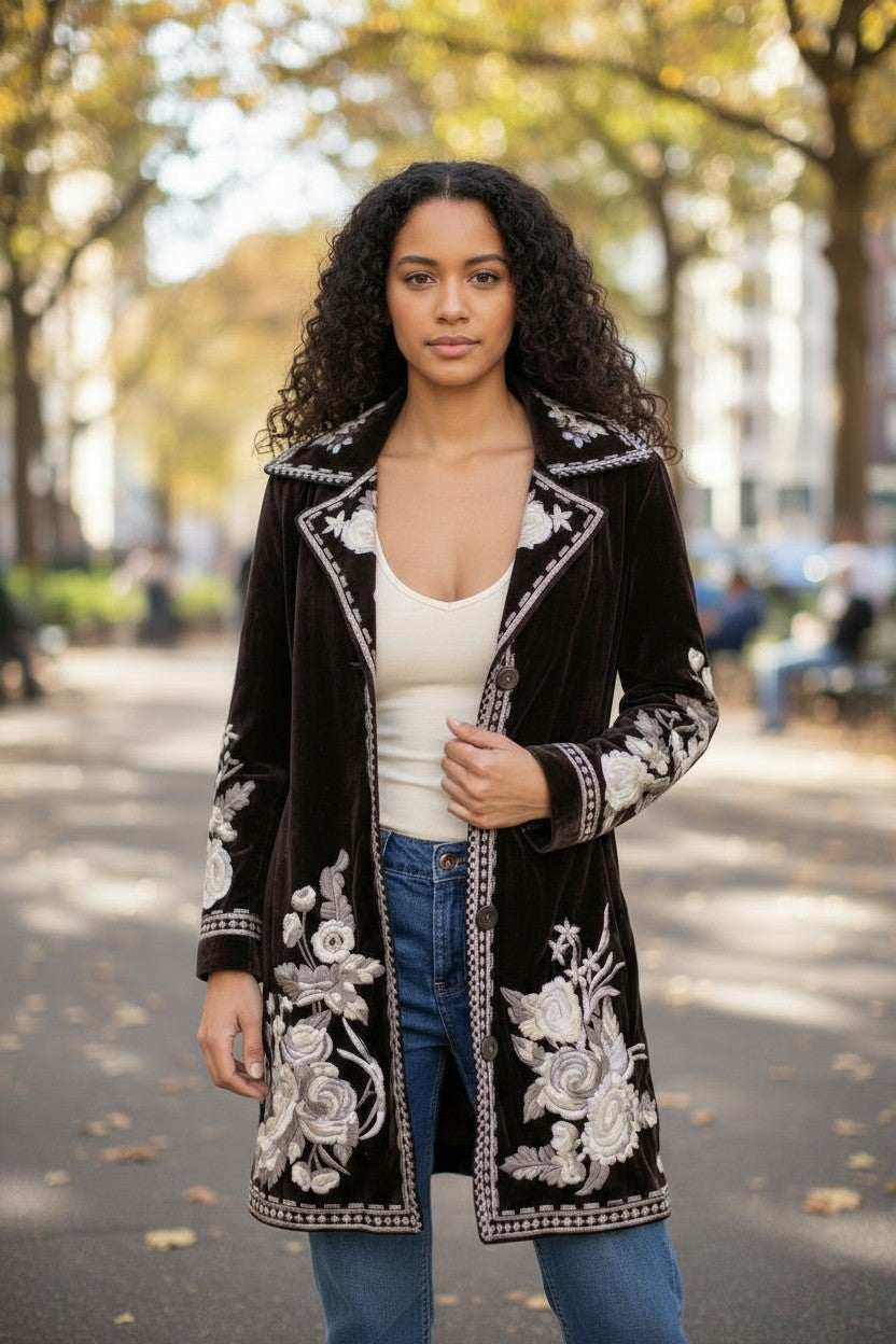 Lauryn Velvet Floral Embroidered Jacket