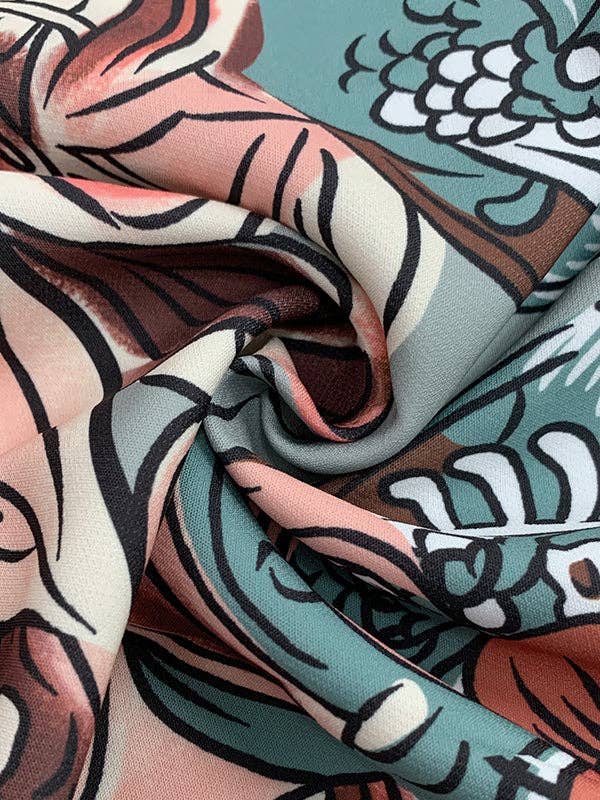 Flared Pants Floral Printed High-Waisted Pockets Jeans