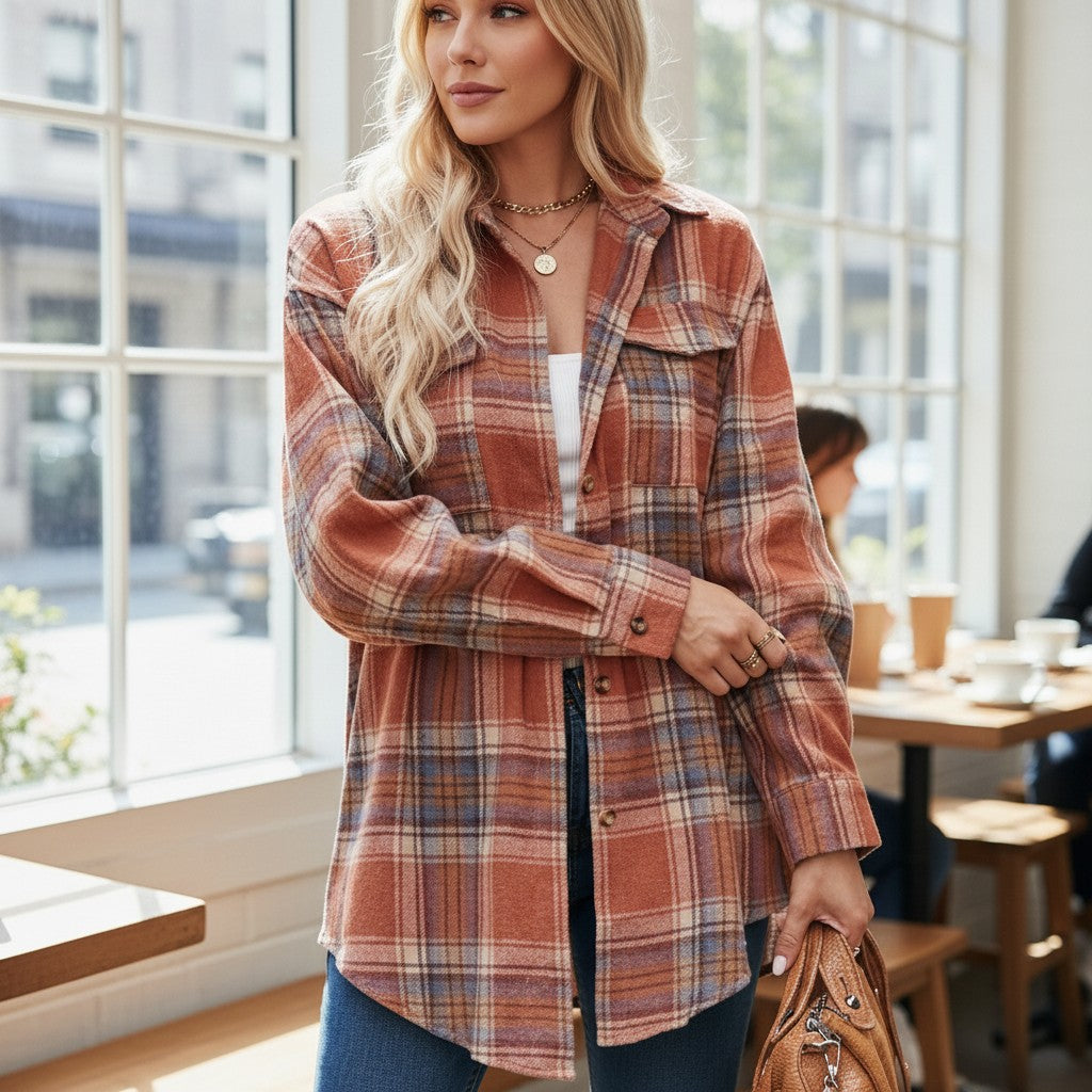 Perfect for pairing with jeans, leggings, or boots, this versatile shirt transitions seamlessly from casual days to office wear, travel, or weekend outings. An easy staple for fall and winter layering.