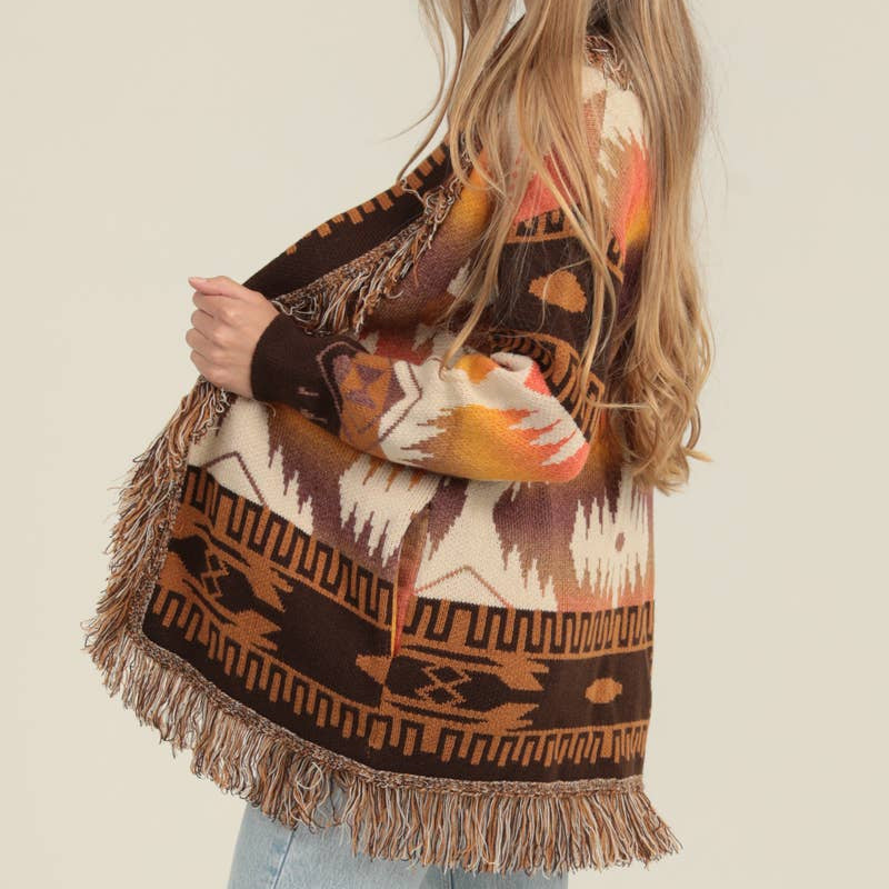 Carlie Fringe Shawl Aztec Cardigan