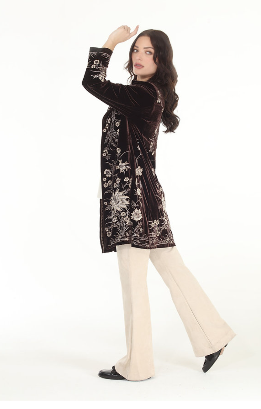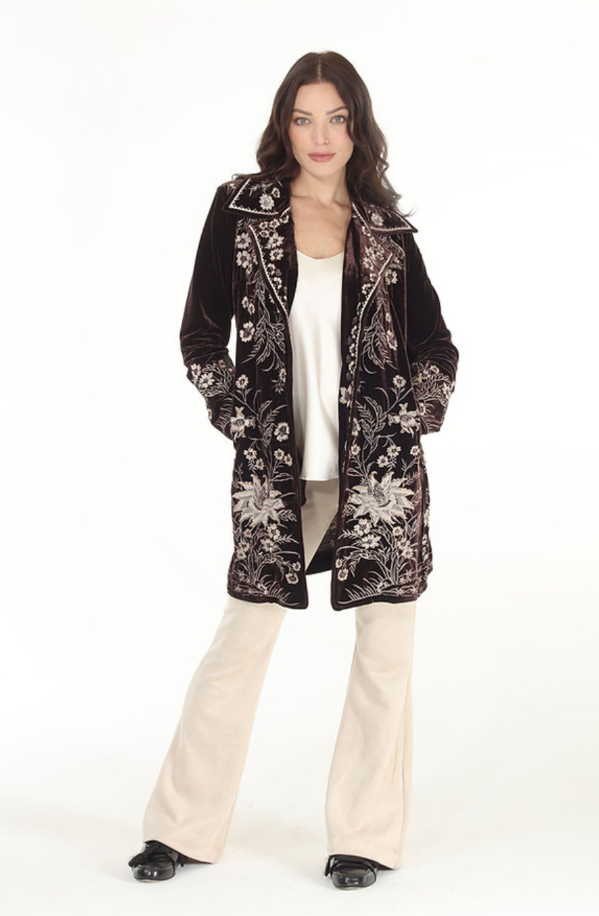 Elsie Stretch Velvet Button Contrast Embroidered Jacket