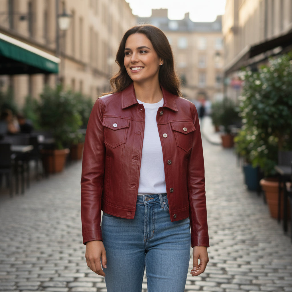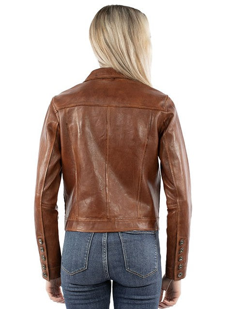 The Scully Lamb Jean Jacket delivers a classic denim-jacket silhouette reimagined in soft, supple lambskin leather. Designed with an easy, flattering fit, this leather jean jacket offers timeless Western style with elevated craftsmanship.