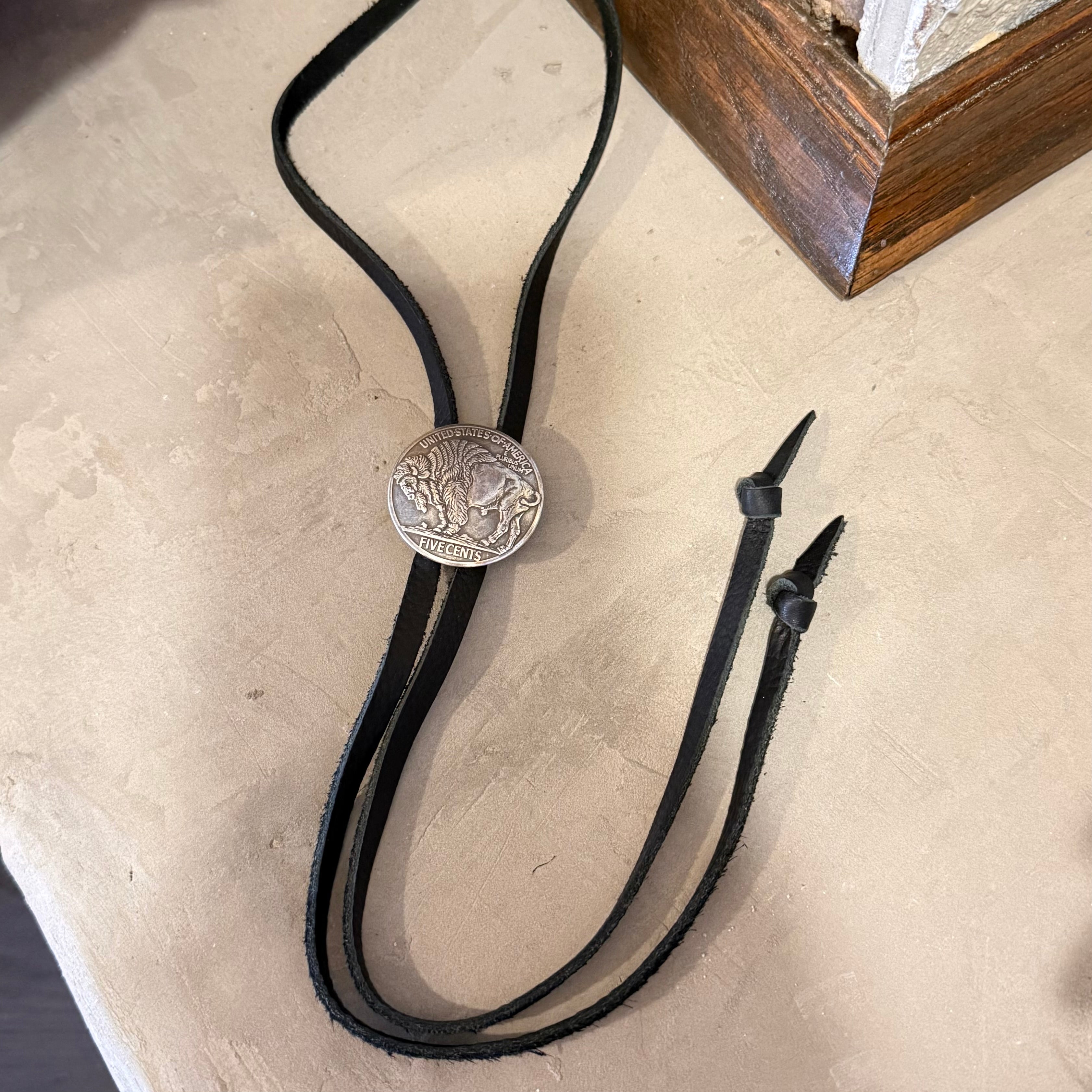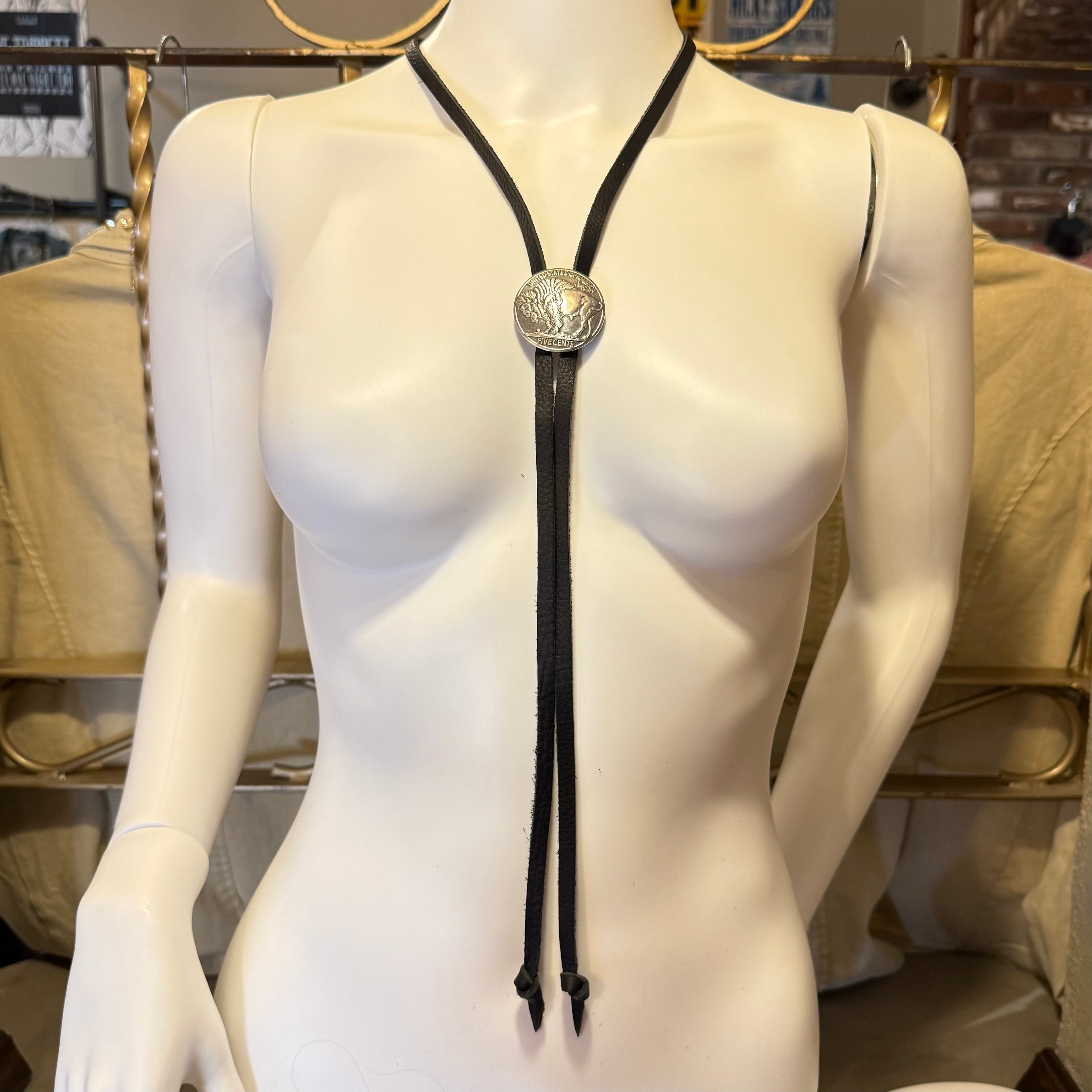 This bolo is built from supple black leather and finished with a bold buffalo concho that sits clean and centered. No extra shine. No unnecessary hardware. Just strong lines, real texture, and classic western authority. The extended 50-inch length gives you versatility, whether you wear it traditional and tight or loose and relaxed with movement.