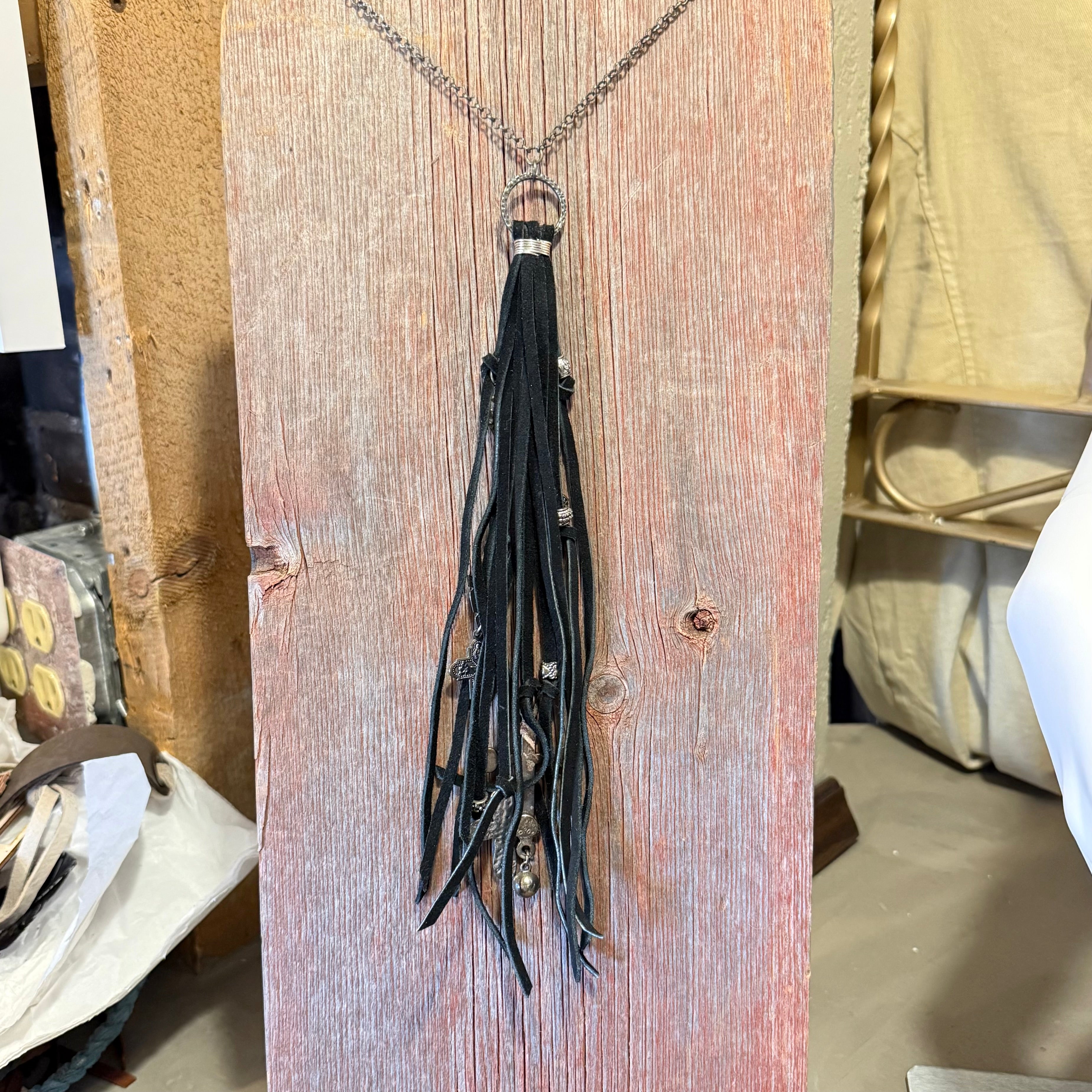 Long Vintage Tassel Leather Charm Necklace