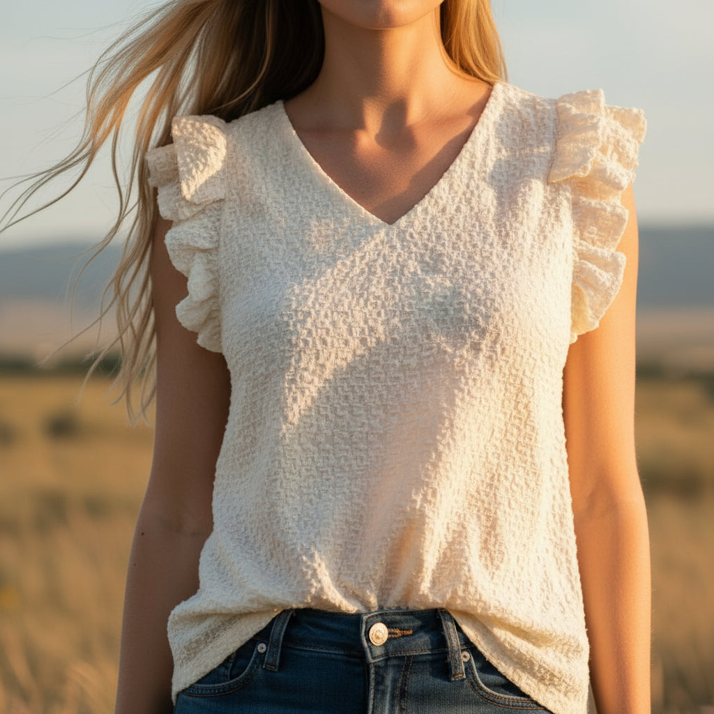 Ivory Textured Ruffle Sleeve V-Neck Tunic Top
