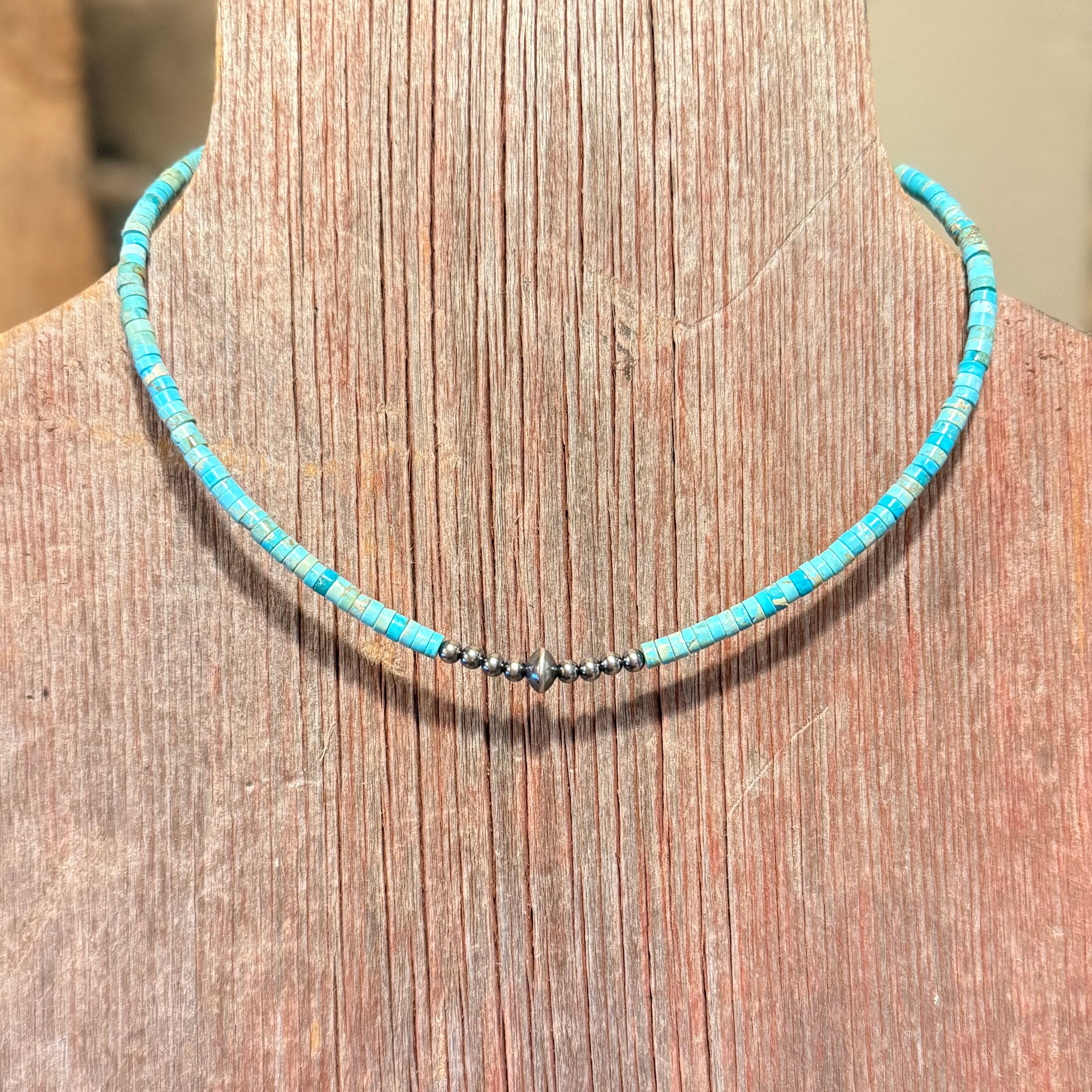 Adjustable from approximately 14–16 inches, this necklace sits comfortably at the collarbone and layers beautifully with chokers, lariats, or heavier sterling pieces. Each turquoise bead carries natural variation in tone and matrix, making every necklace truly one of a kind.