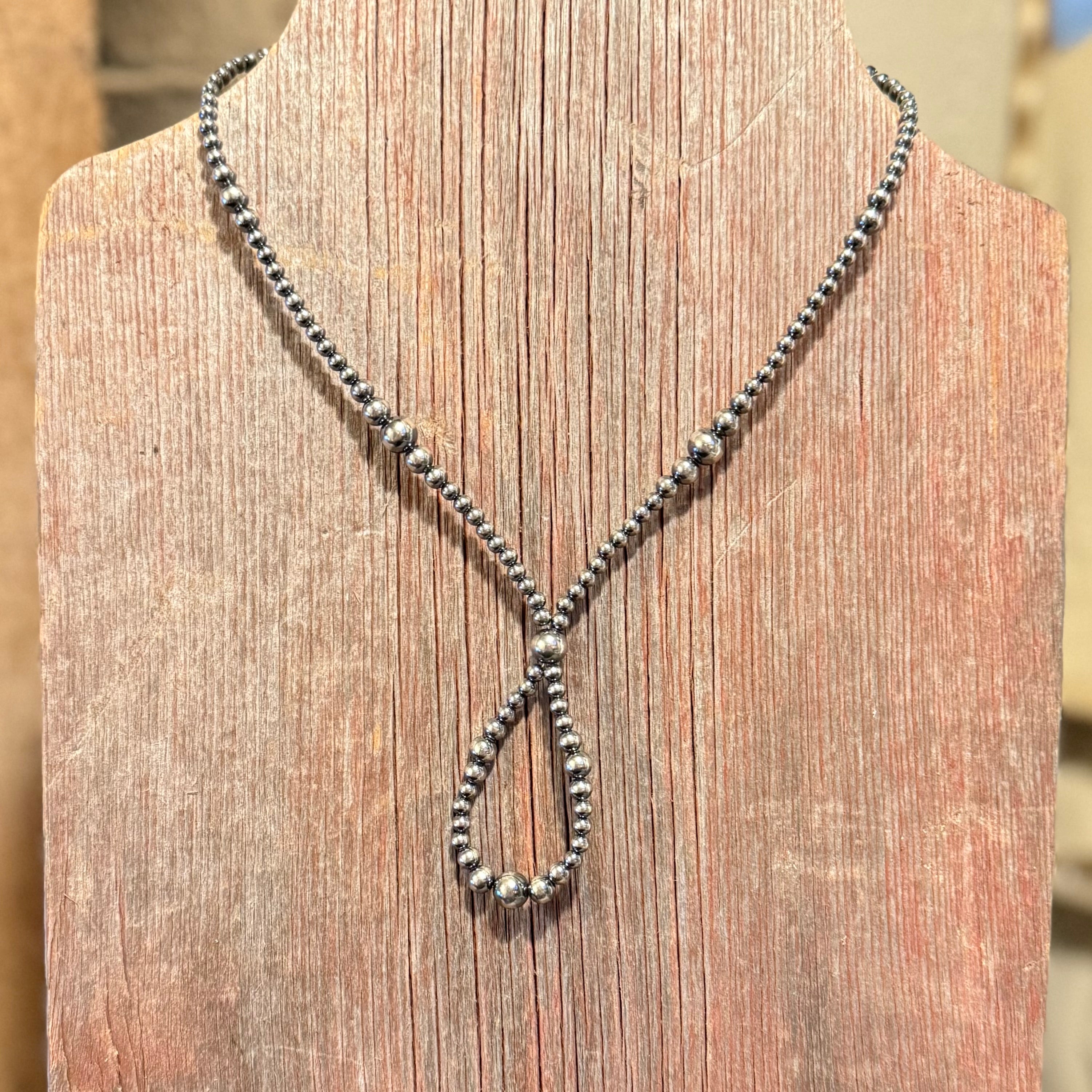 Adjustable from approximately 22–24 inches, this longer length makes it ideal for deeper necklines, layering over knits, or wearing solo as a minimalist statement. The polished silver pearls catch the light without overpowering, giving this piece an elegant Western edge that feels modern and intentional.