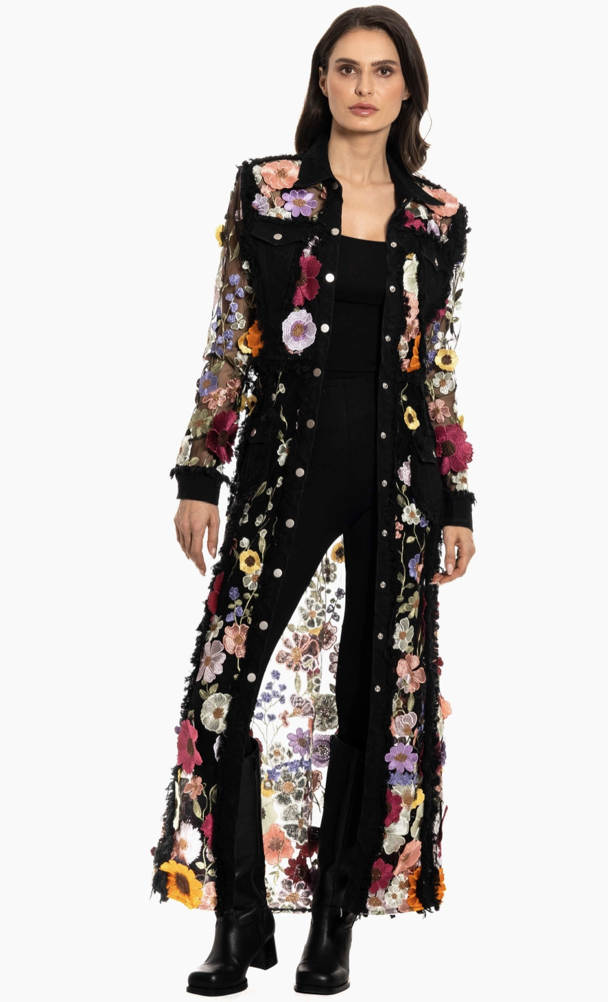 Black Lace Eyelet Button-Down Blouse – Long Sleeve Elegance