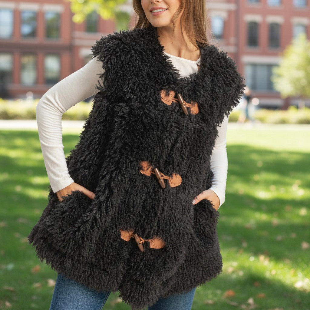 Soft, cozy, and statement-worthy, this vest transitions effortlessly from crisp outdoor days to cozy indoor evenings. Whether layered over denim and boots or styled with leggings for a laid-back look, it adds depth and warmth without sacrificing style.