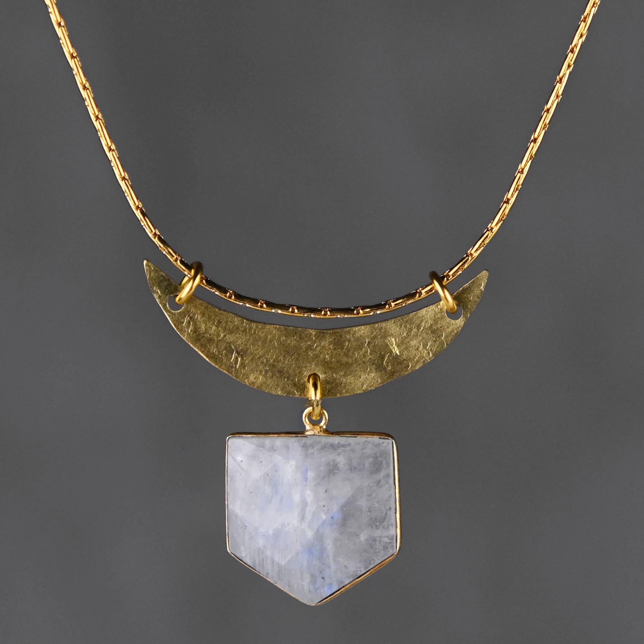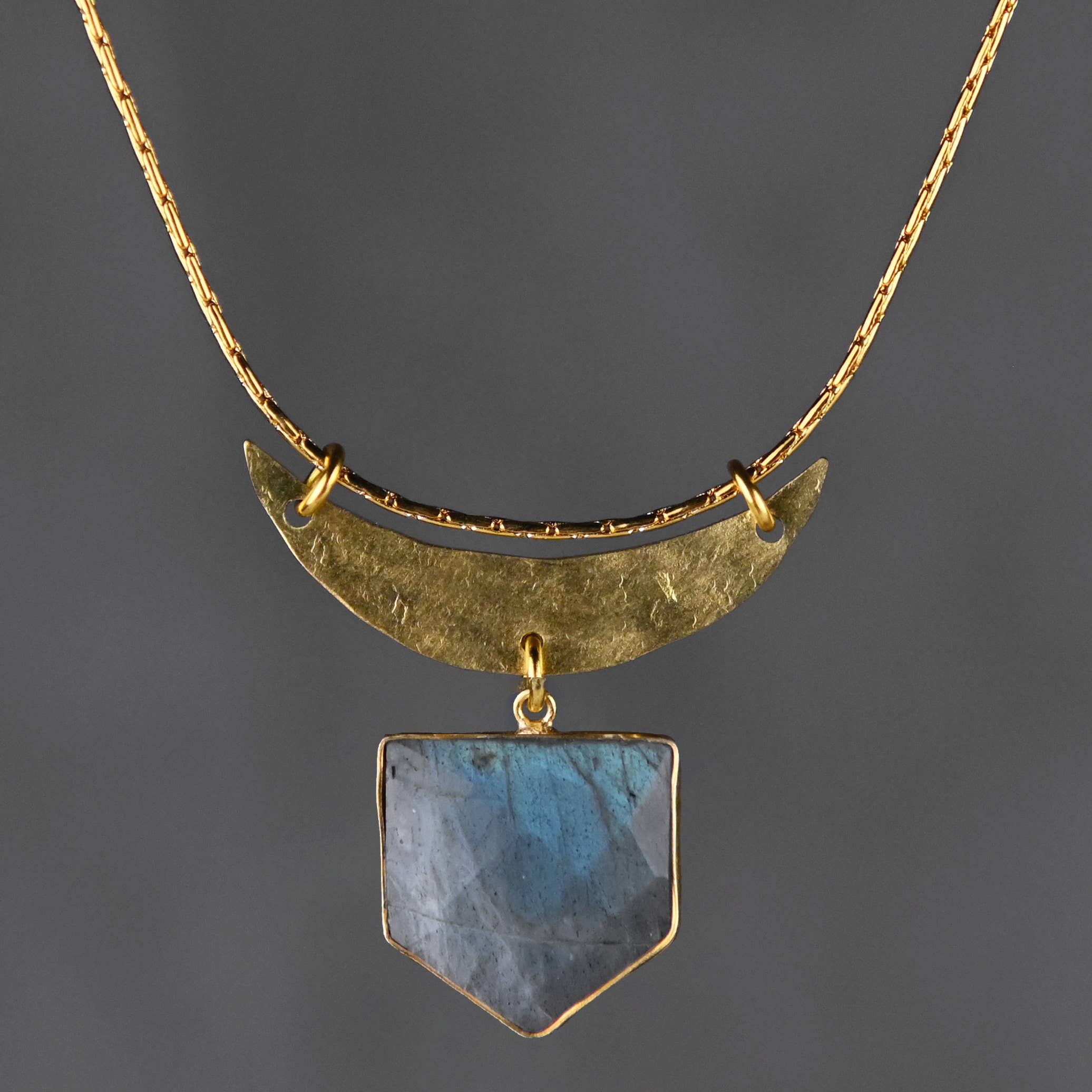Hammered Moon & Labradorite Shield Necklace