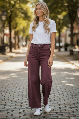 Burgundy Judy Blue High Waist Wide Leg Jeans