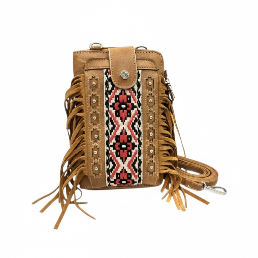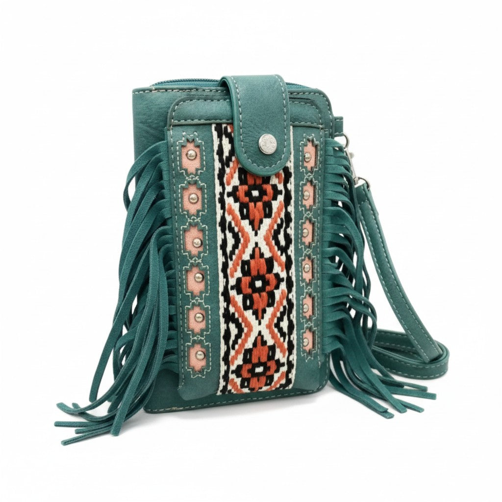 Aztec Tribal Print Fringe Crossbody Western Phone Wallet