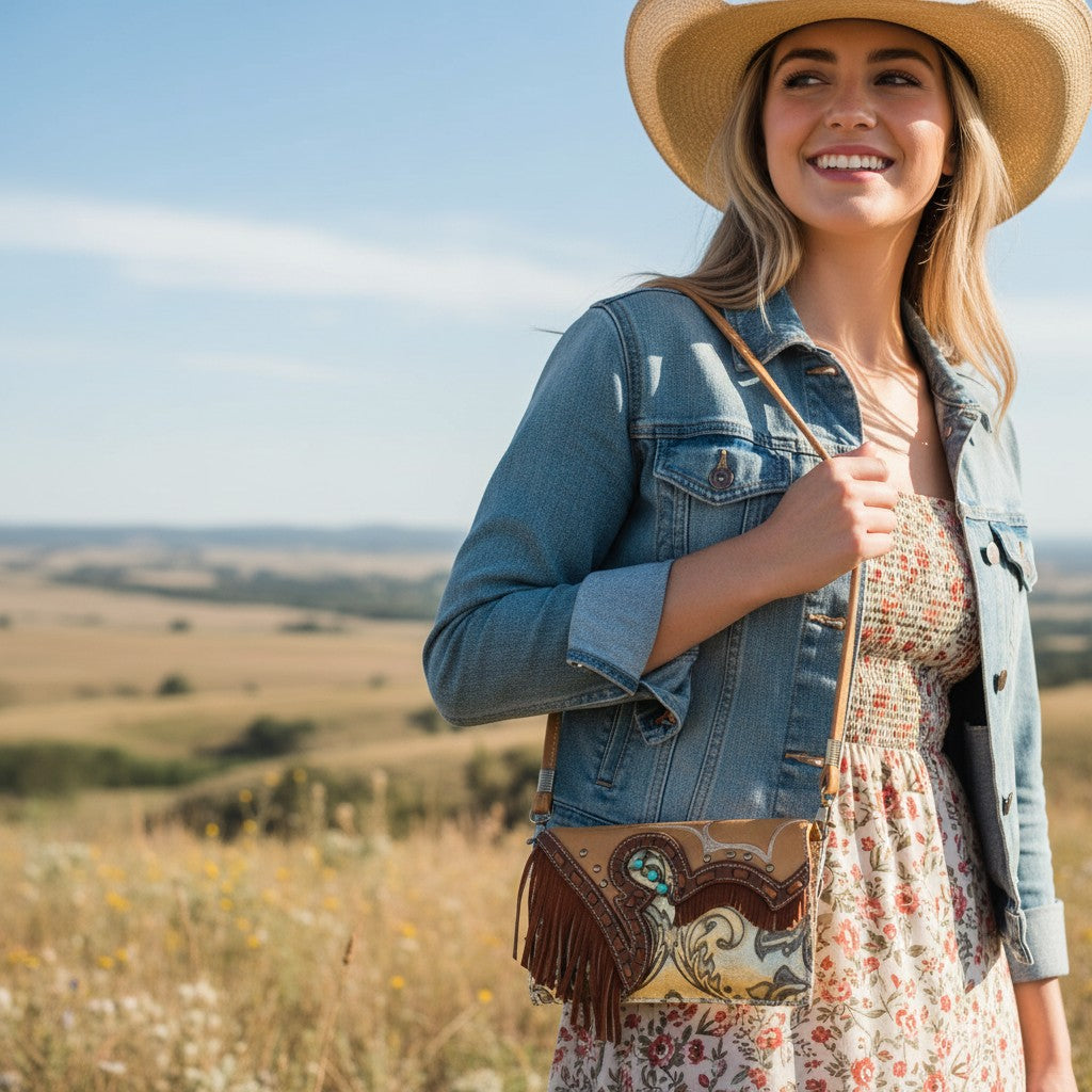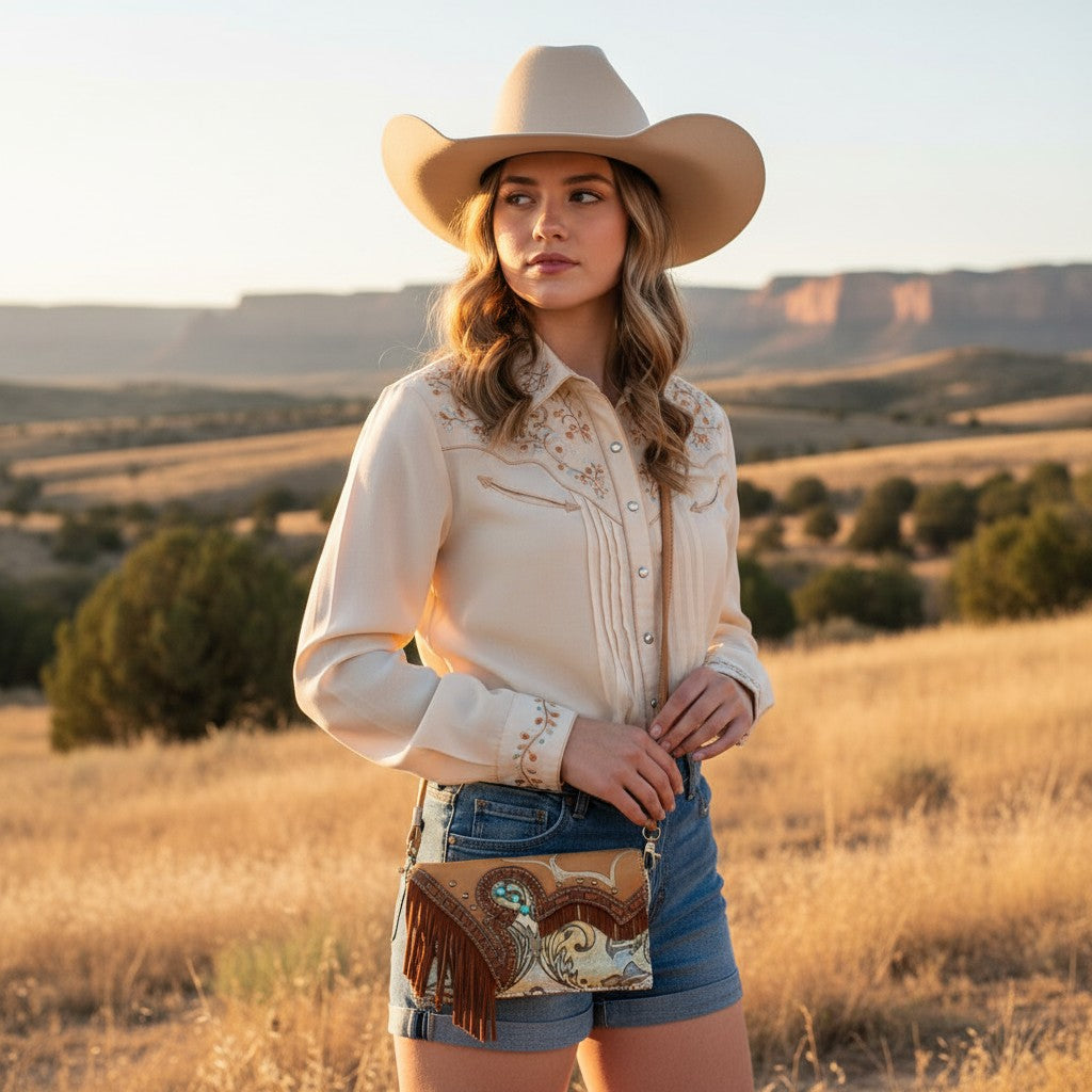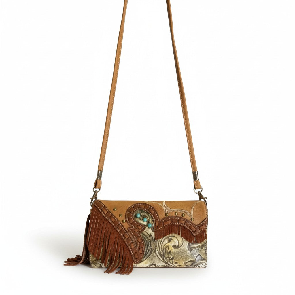 A timeless western crossbody wallet with texture, detail, and everyday ease.
