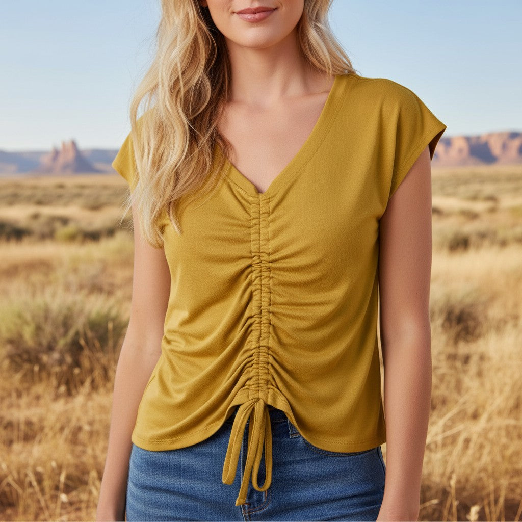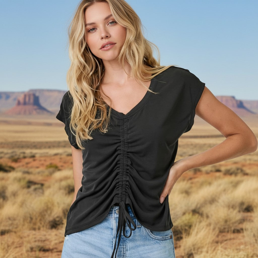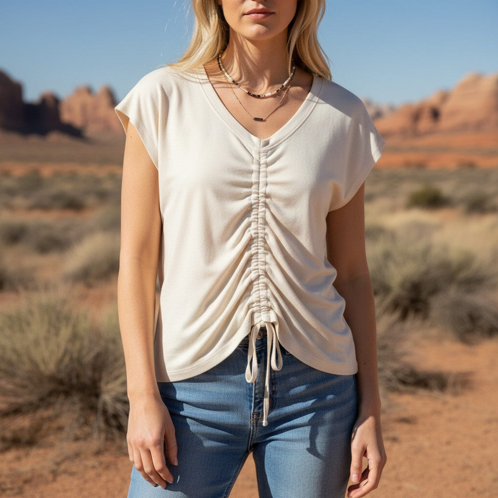 Made from soft, breathable modal, it drapes beautifully without clinging. The adjustable rouched front lets you change the shape depending on how you’re feeling. Wear it relaxed and easy, or cinch it slightly for a more defined silhouette.