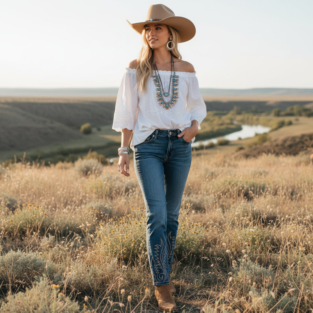These jeans carry Western influence in a refined way. No excess. No distraction. Just strong design, clean lines, and standout detail where it matters most.