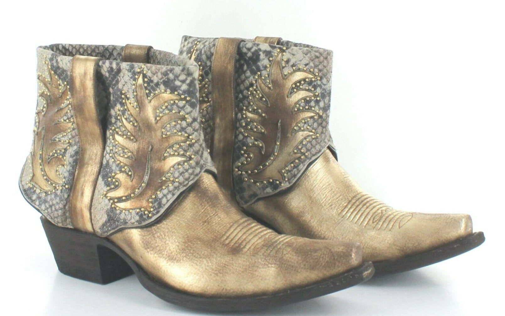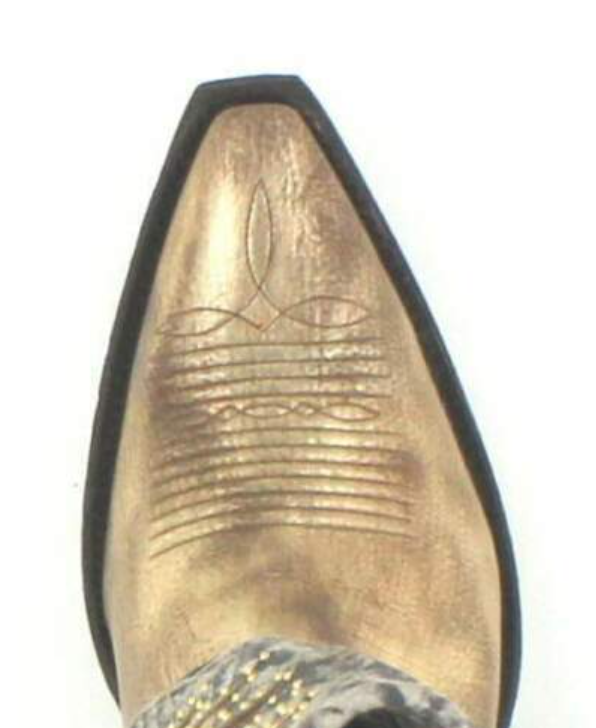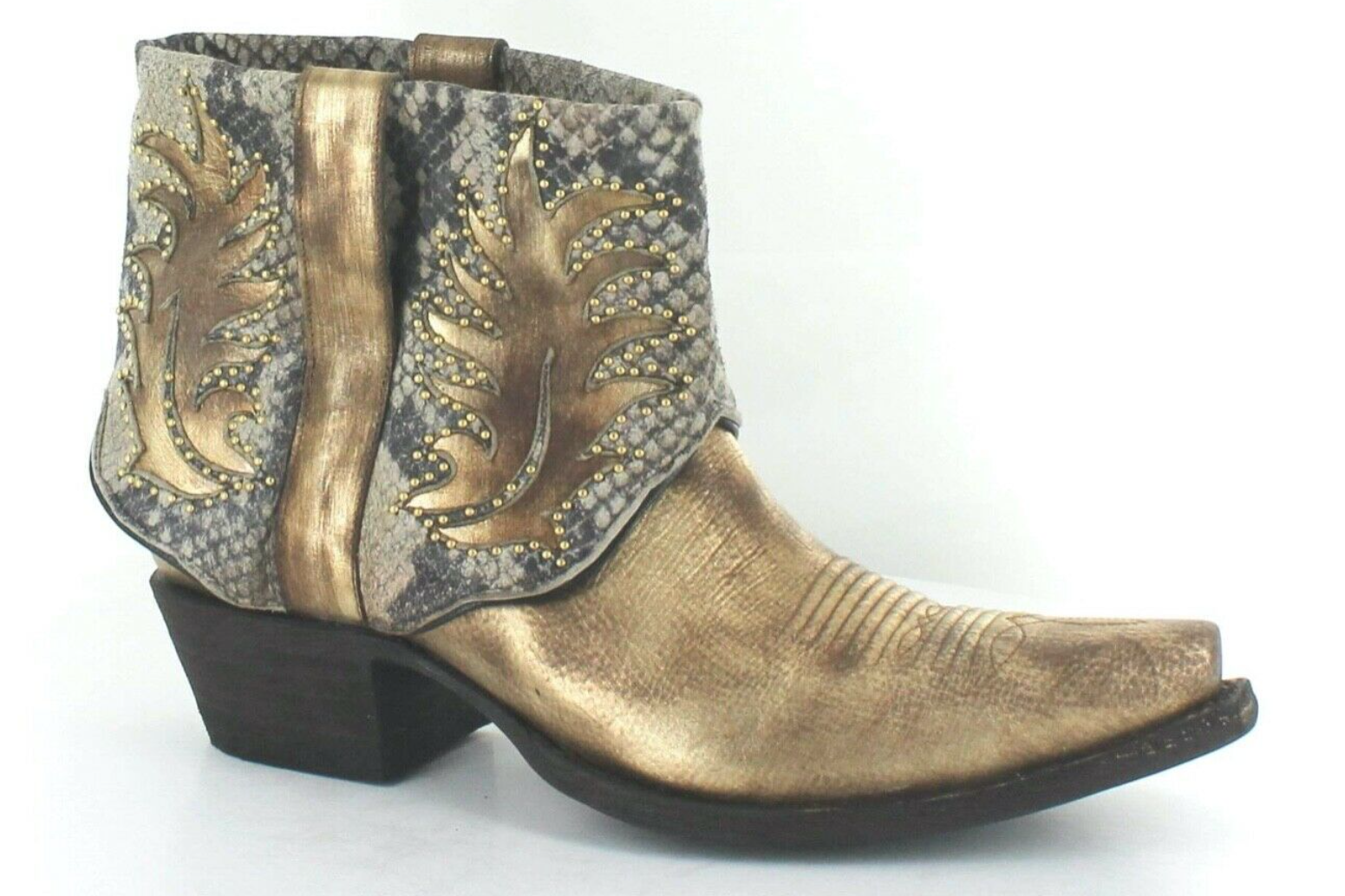 Bold, modern, and unmistakably Western, this 6" bootie features a foldover snake-print shaft paired with a striking metallic foot for a standout edge. The studded detailing and sculpted Western overlays add texture and attitude, making this style perfect for concerts, nights out, or elevating everyday denim.